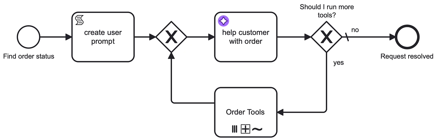 You don’t need to invent a new toolkit. You just model your tools as BPMN elements. The only difference is that the agent, not the user, will decide when and how to use them.