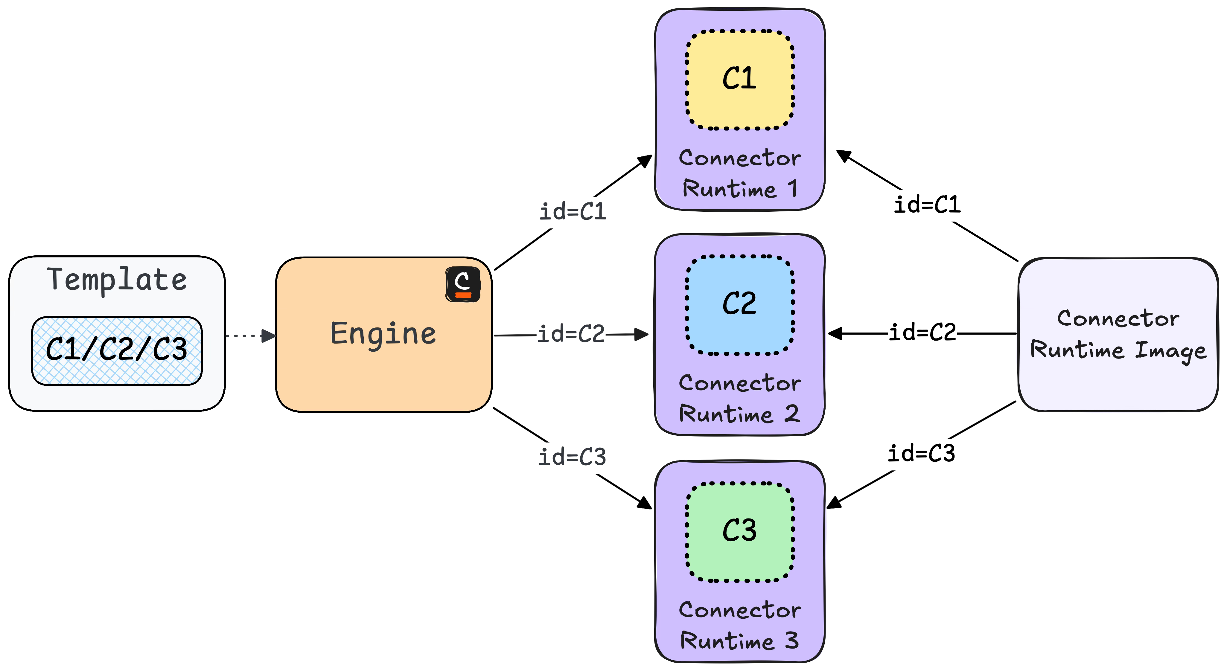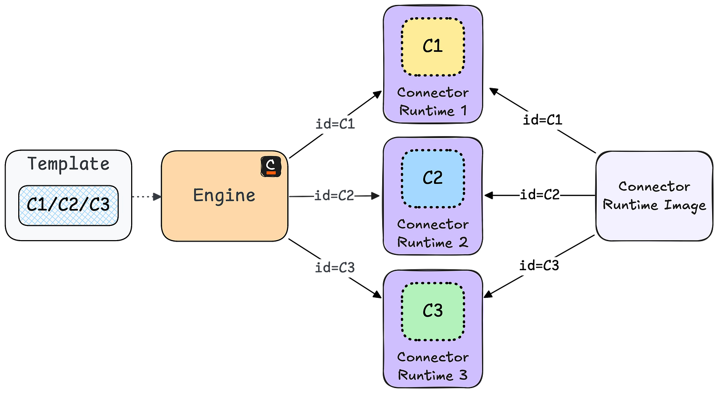 The solution to this was also relatively easy to execute. The only thing that has to change is the id in the connector runtime and the template. This id is used by the engine to assign a certain job to a connector runtime.