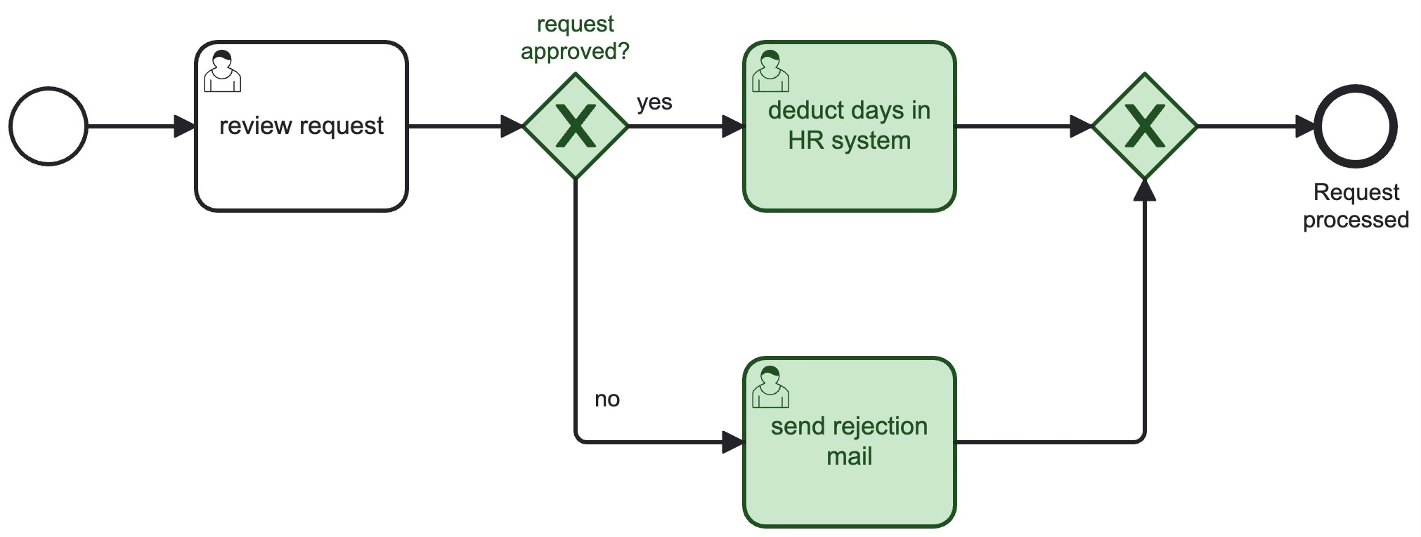 Exclusive Gateway: “Request Approved?”